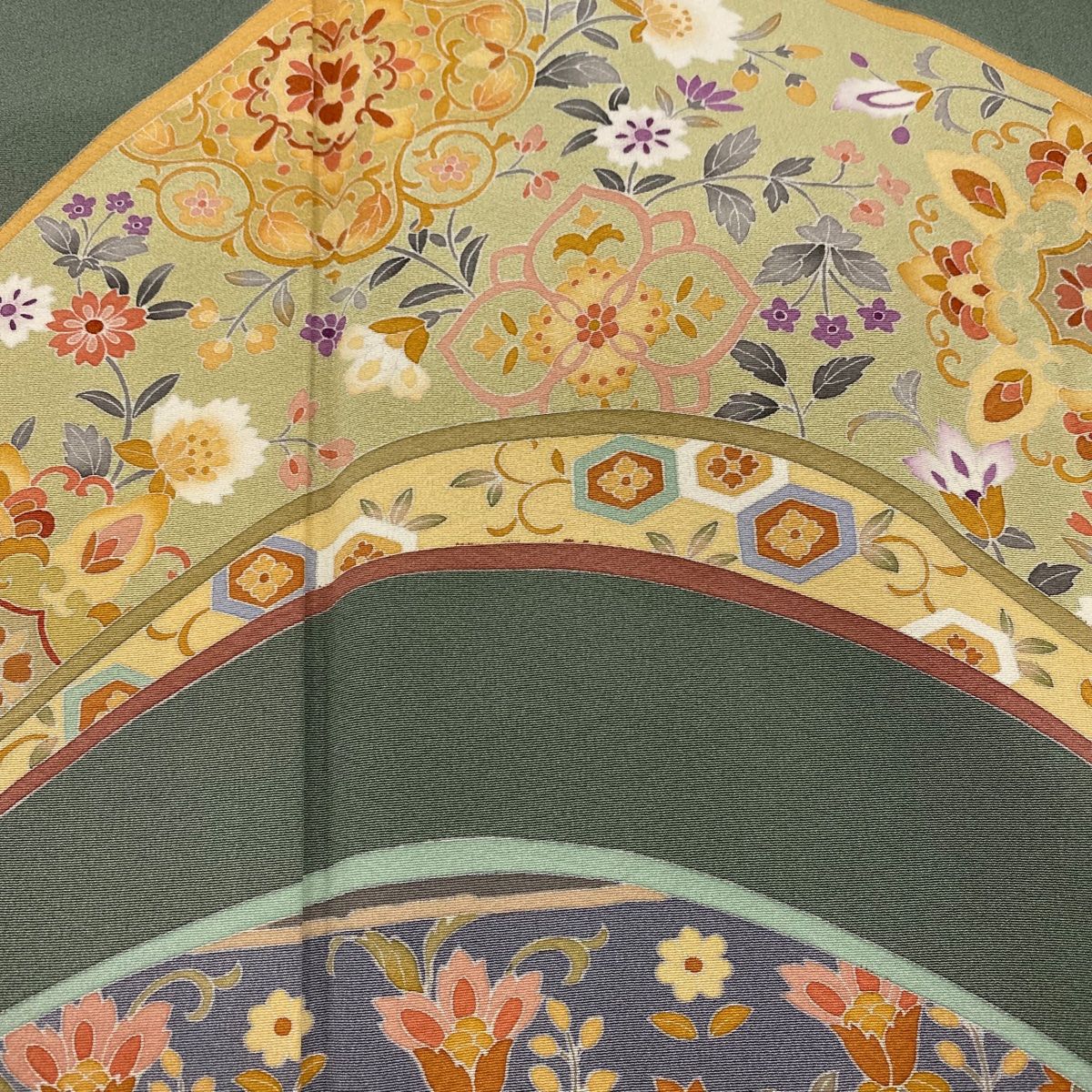 訪問着 身丈166cm 裄丈65.5cm M 袷 落款 華文 草花 灰緑 正絹 秀品の検索結果