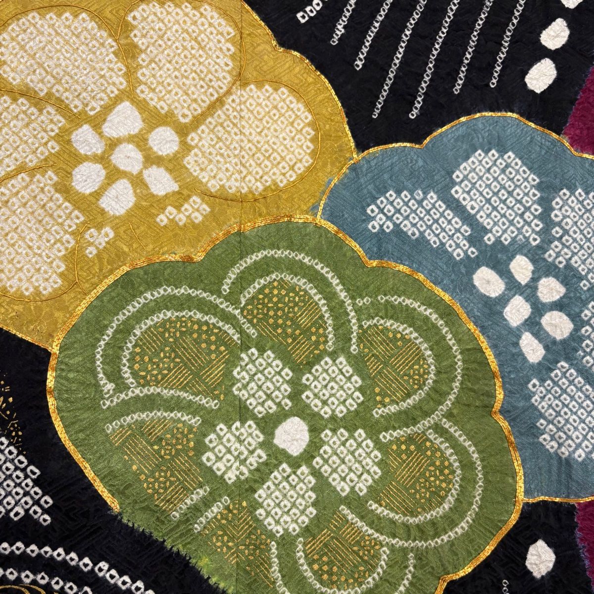 振袖 身丈161.5cm 裄丈65.5cm M 袷 松竹梅 雪輪 金糸 金彩 黒 正絹