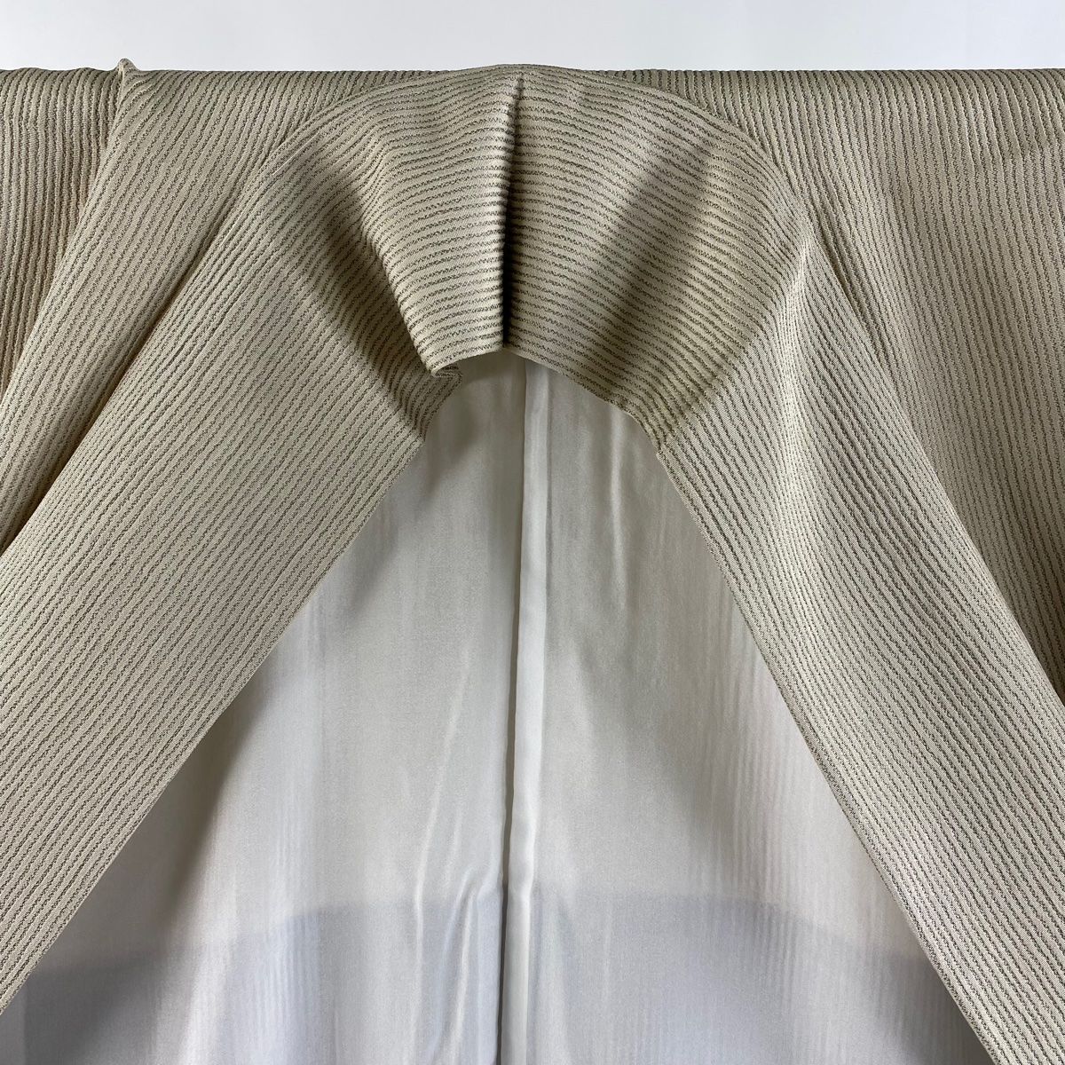 お召 身丈157cm 裄丈65cm M 袷 落款 縦縞 ベージュ 正絹の検索結果