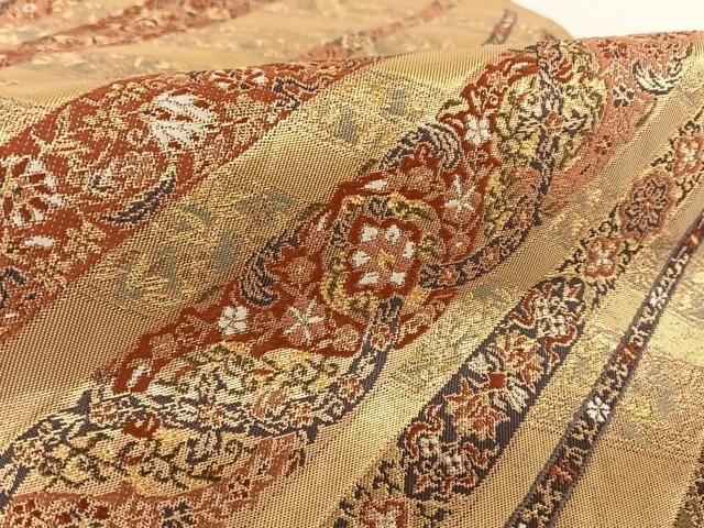平和屋着物 西陣の名門 加納幸謹製 六通柄袋帯 更紗花文 金糸 正絹 AABA4970np WWW_GLOBALQUALITYIMPORTS_COM