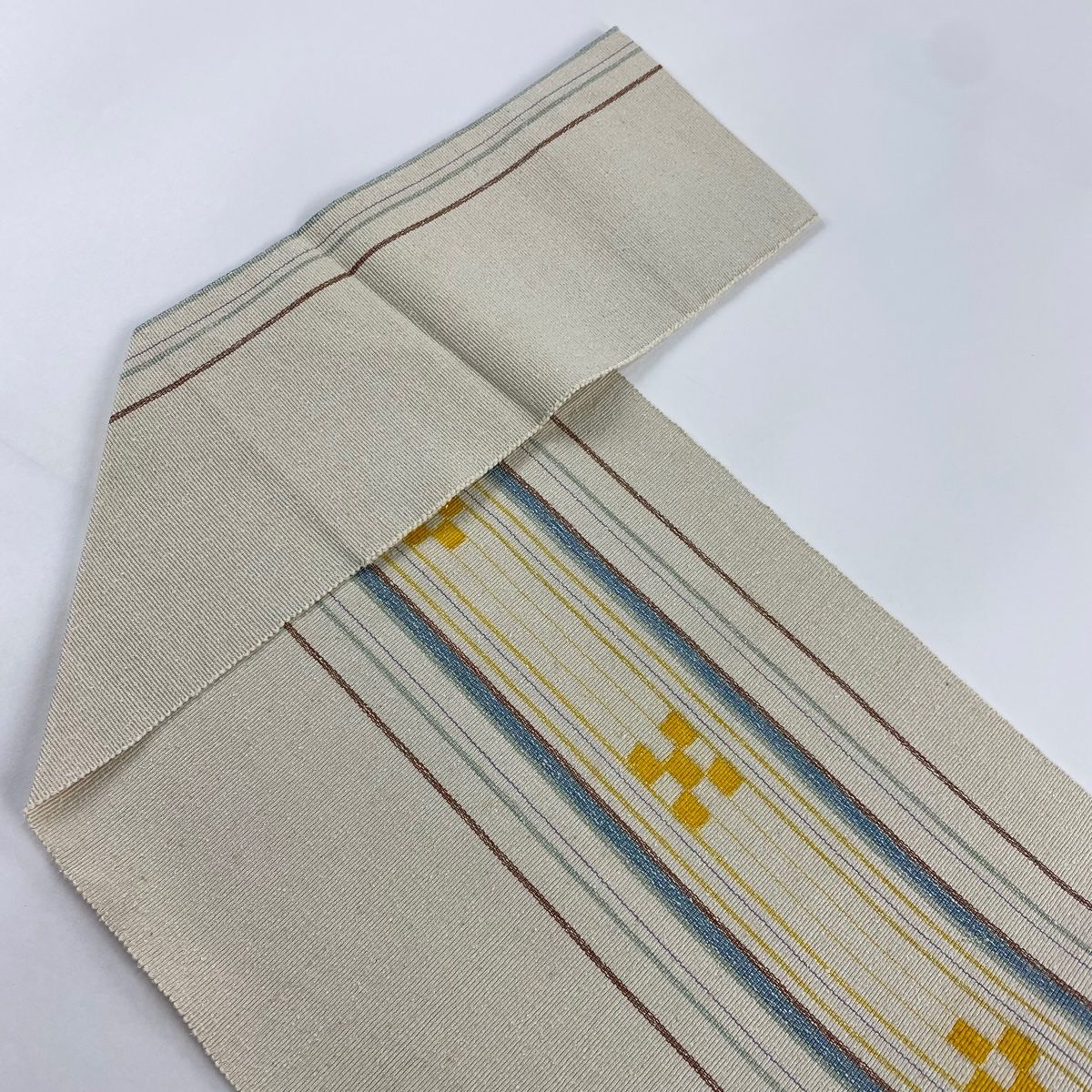 名古屋帯 琉球かすり 松葉仕立て 八寸名古屋帯 縞 幾何学模様 クリーム 正絹 WWW_GLOBALQUALITYIMPORTS_COM