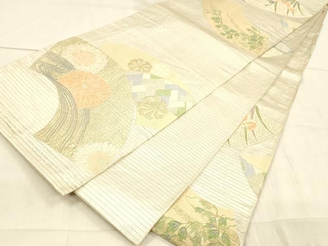 平和屋着物 夏物 アンティーク 大正ロマン 丸帯 地紙流水花文 金銀糸 正絹 DAAW4511cmの検索結果