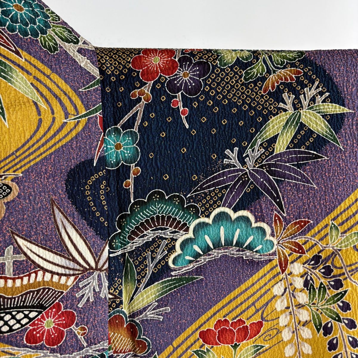 振袖 身丈160.5cm 裄丈67cm M 袷 松竹梅 流水 銀彩 染め分け 黄土色 正絹の検索結果