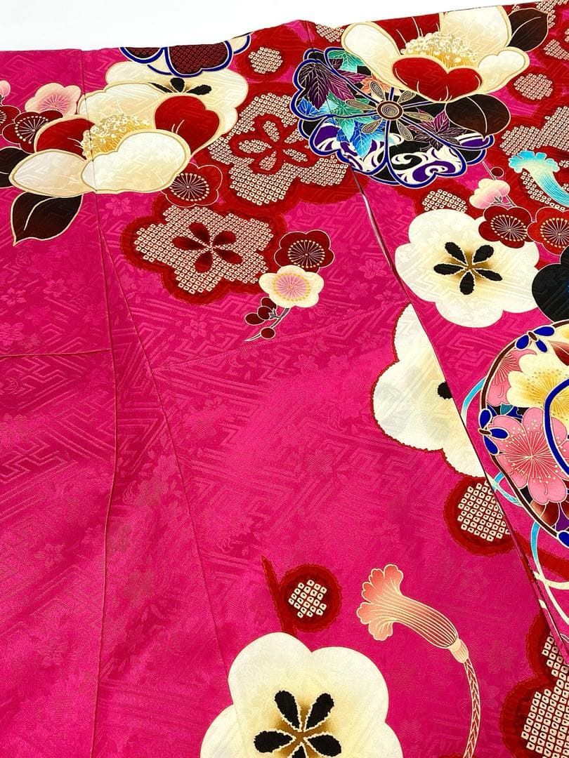 振袖 着物 リサイクル 正絹 成人式 フォーマル 金駒刺繍 金彩加工 赤 梅 菊 花 二十歳 20歳 成人式 結婚式 卒業式 春 秋 冬 仕立て上がり 身丈171 裄丈69 ふくよか TLサイズ トールサイズ LL 2L みやがわ sb16566