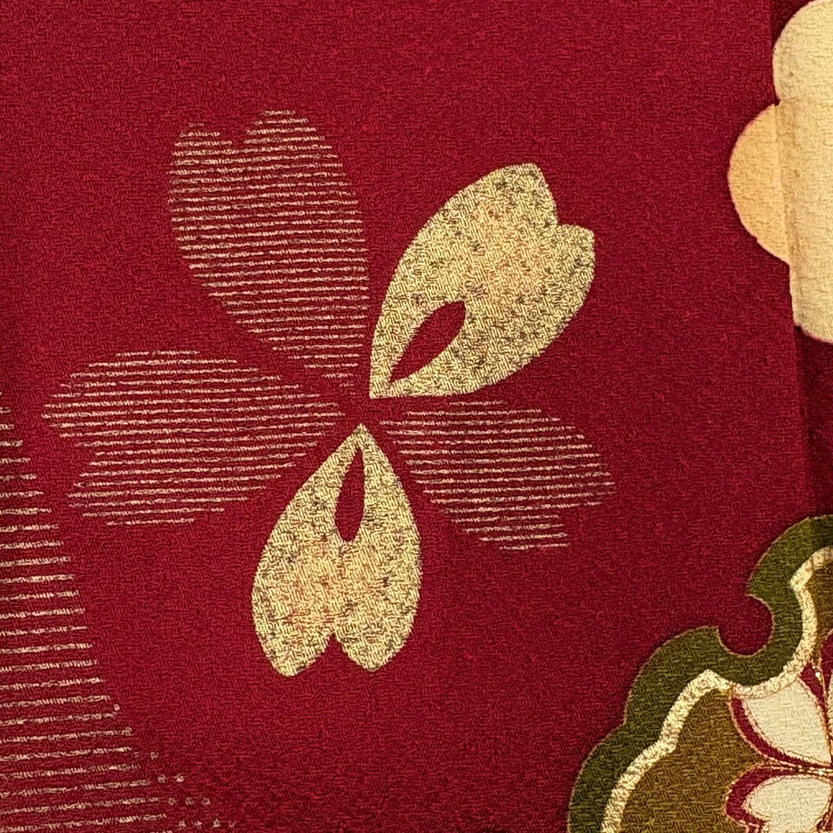 振袖 身丈156cm 裄丈62.5cm S 袷 やまと 雪輪 梅 箔 金彩 えんじ色 正絹 秀品の検索結果