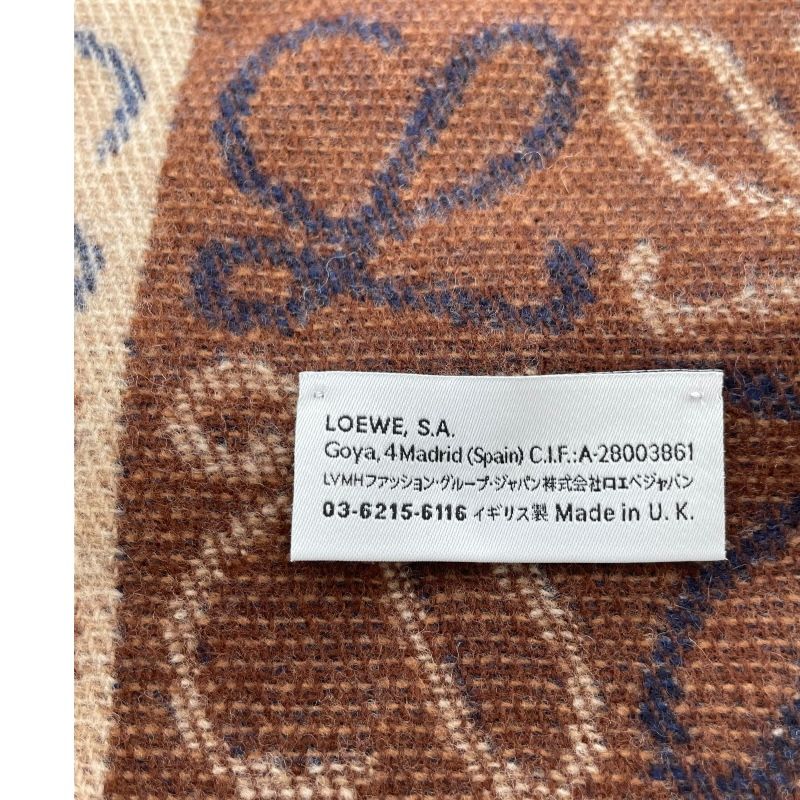 ロエベ LOEWE チェッカーボードマフラー F810487X17 ブラウン ネイビー ウール カシミヤ ユニセックス マフラー WWW_GLOBALQUALITYIMPORTS_COM