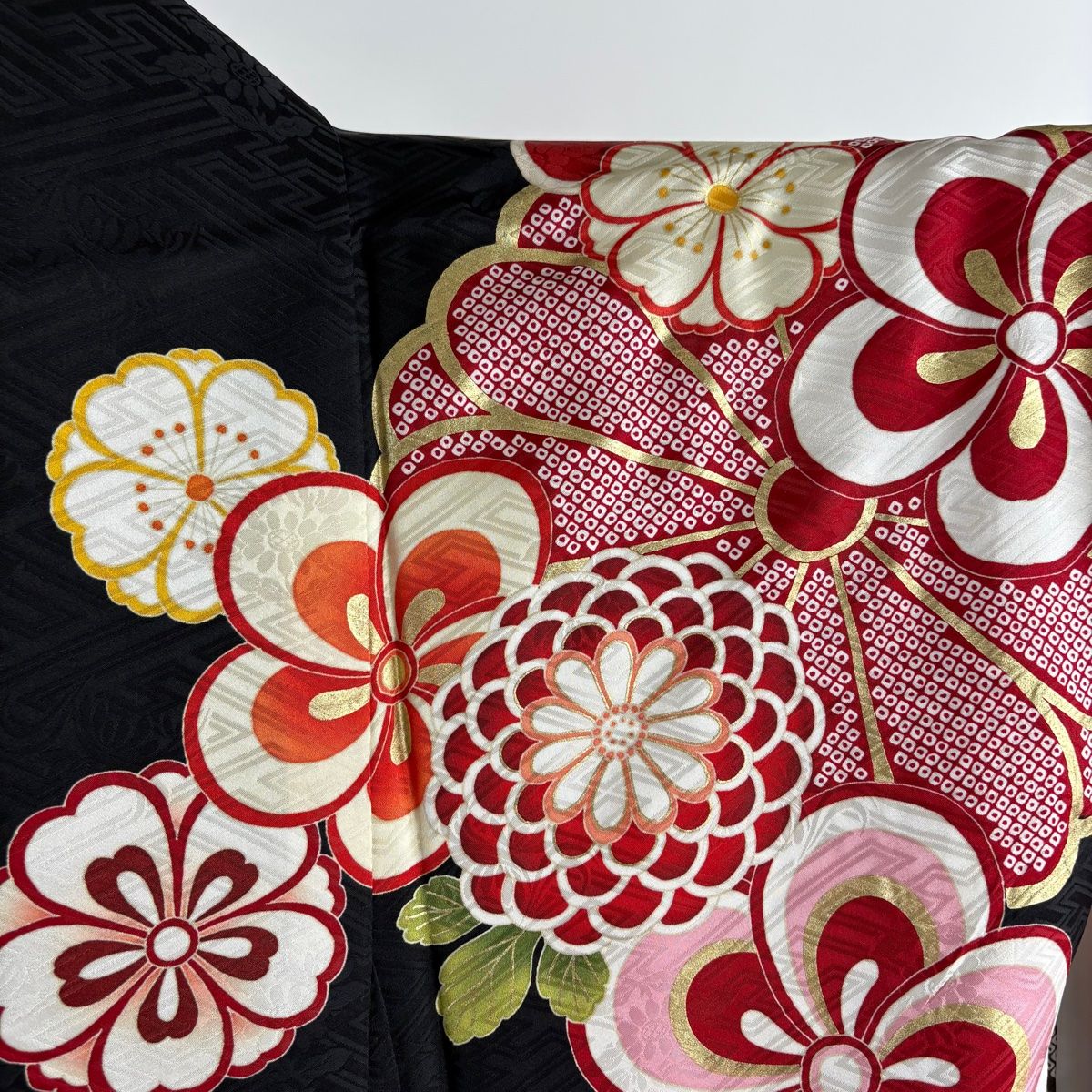 振袖 身丈167cm 裄丈69cm L 袷 Reina Triendl 落款 菊 梅 金彩 黒 正絹の検索結果