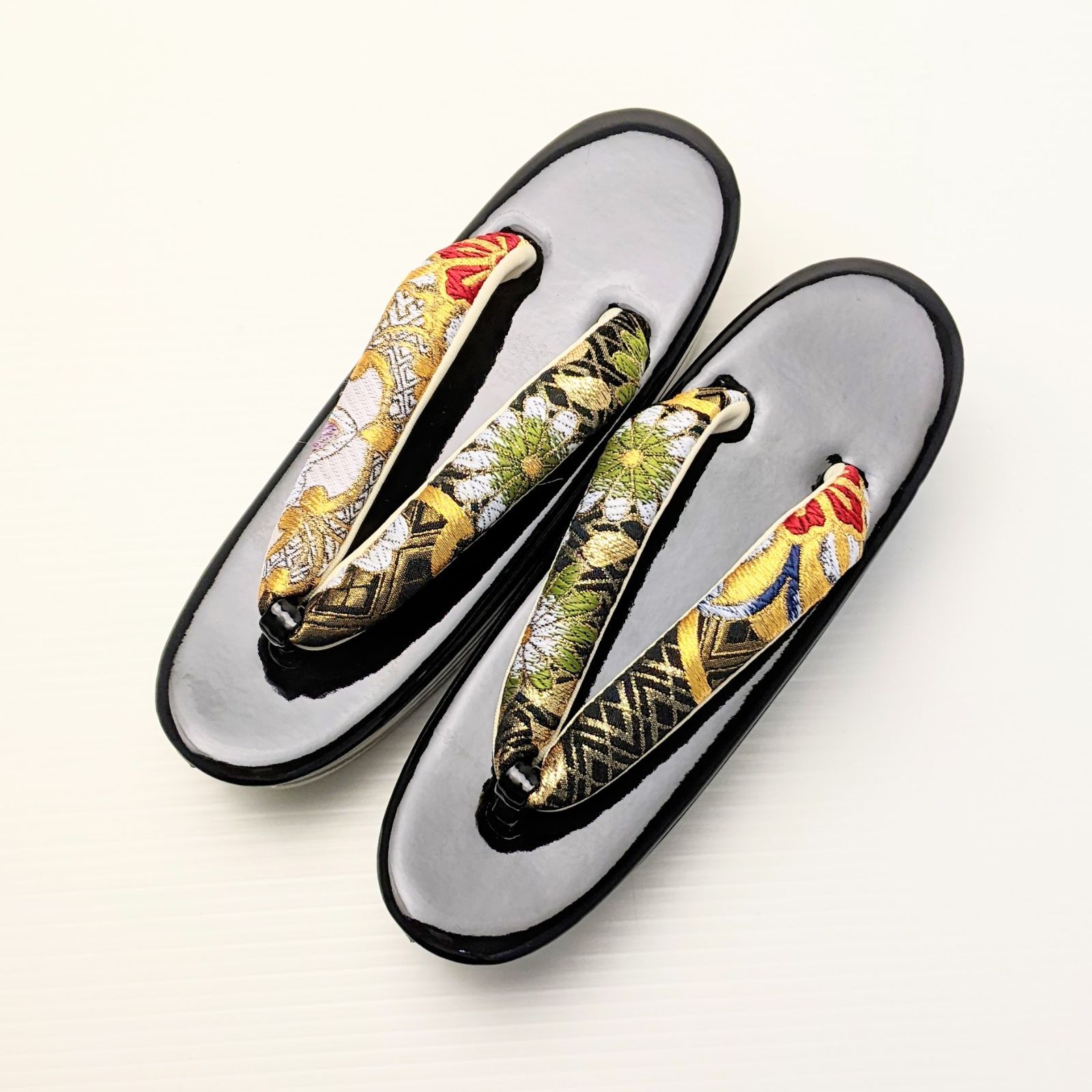 三枚芯 草履バッグセット 振袖用帯地 黒×金 S M L LLサイズ w43-5の検索結果