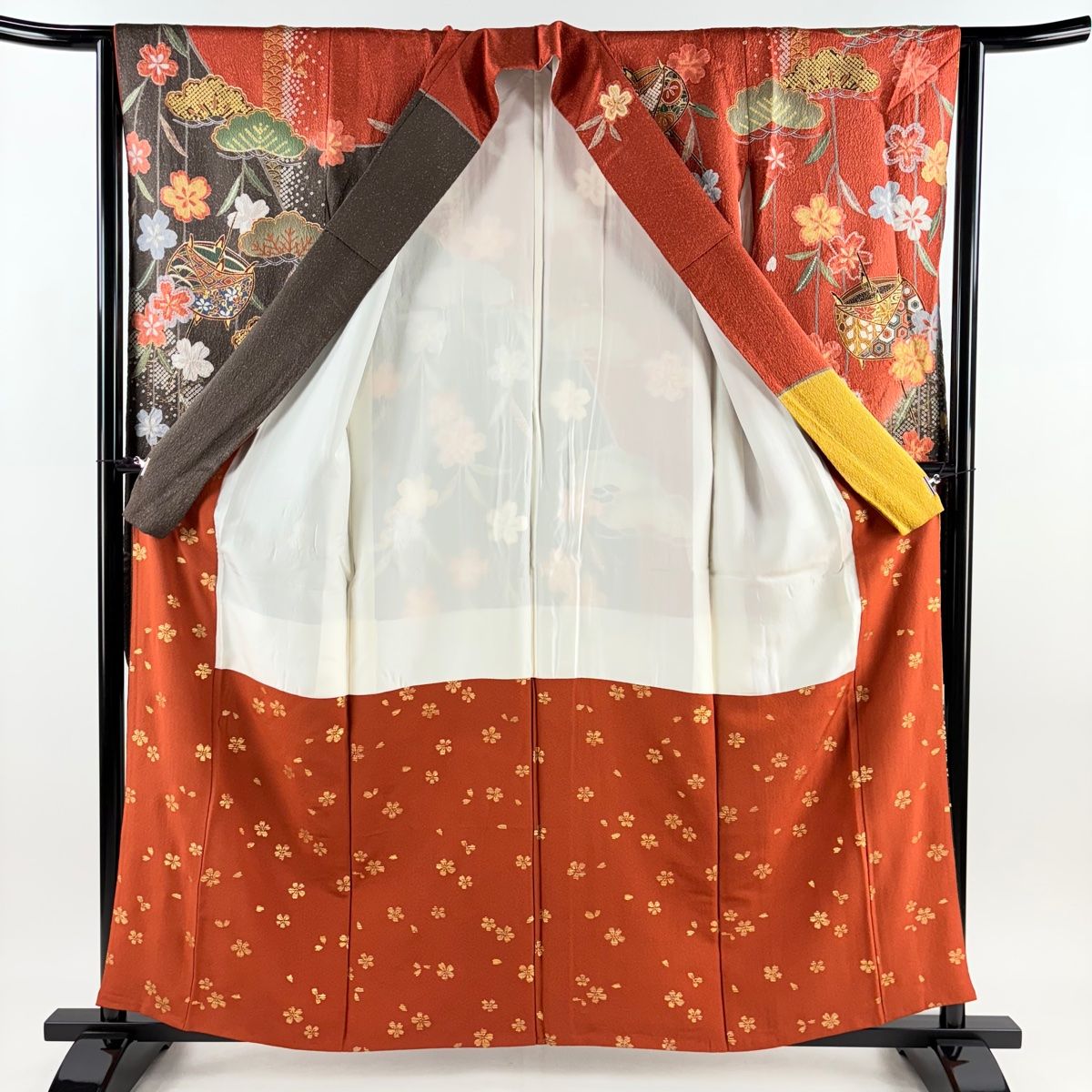 振袖 身丈159.5cm 裄丈64.5cm M 袷 糸巻き 桜 絞り オレンジ 正絹 秀品の検索結果