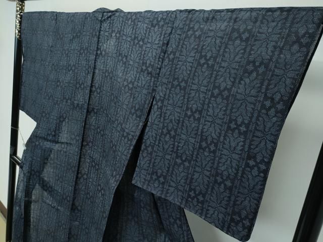 紬 身丈160cm 裄63cm 前幅27cm 後幅31cm 袖丈47cm 袖幅32cm レディース 単衣 連続模様 裄Mサイズ 初夏 初秋用 正絹 シルク ネイビー リメイク リユース リサイクル 呉服のきくや
