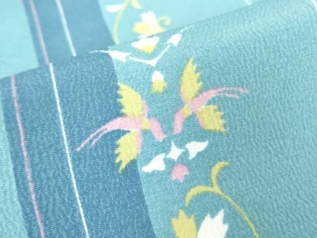 平和屋着物 小紋 単衣 型染め 花唐草文 洗える着物 AABA7416fy