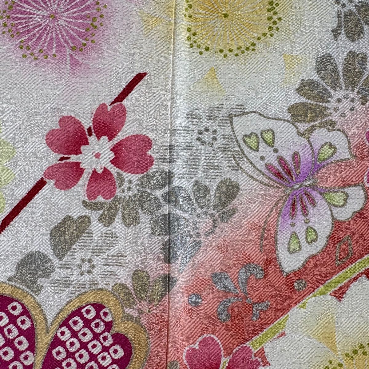 振袖 身丈170.5cm 裄丈69.5cm L 袷 牡丹 桜 刺繍 銀通し クリーム 正絹