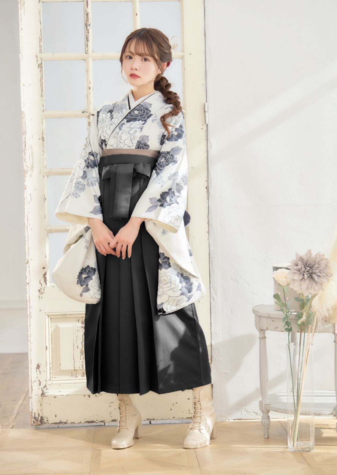 袴3点セット 卒業式 小学生 大学生 モノトーン ライトグレー ブラック 黒 87LGR BKの検索結果