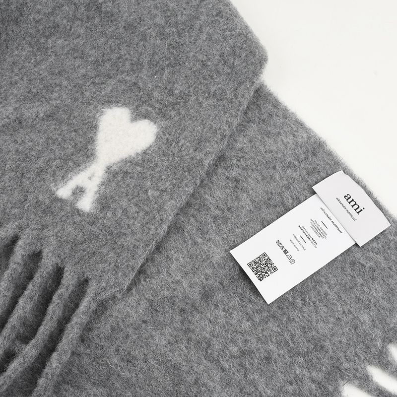 AMI PARIS ALEXANDRE MATTIUSSI アミ パリス アルパカマフラー USF673 AW0004 050 GRIS イタリア 2025-2026AW WWW_GLOBALQUALITYIMPORTS_COM