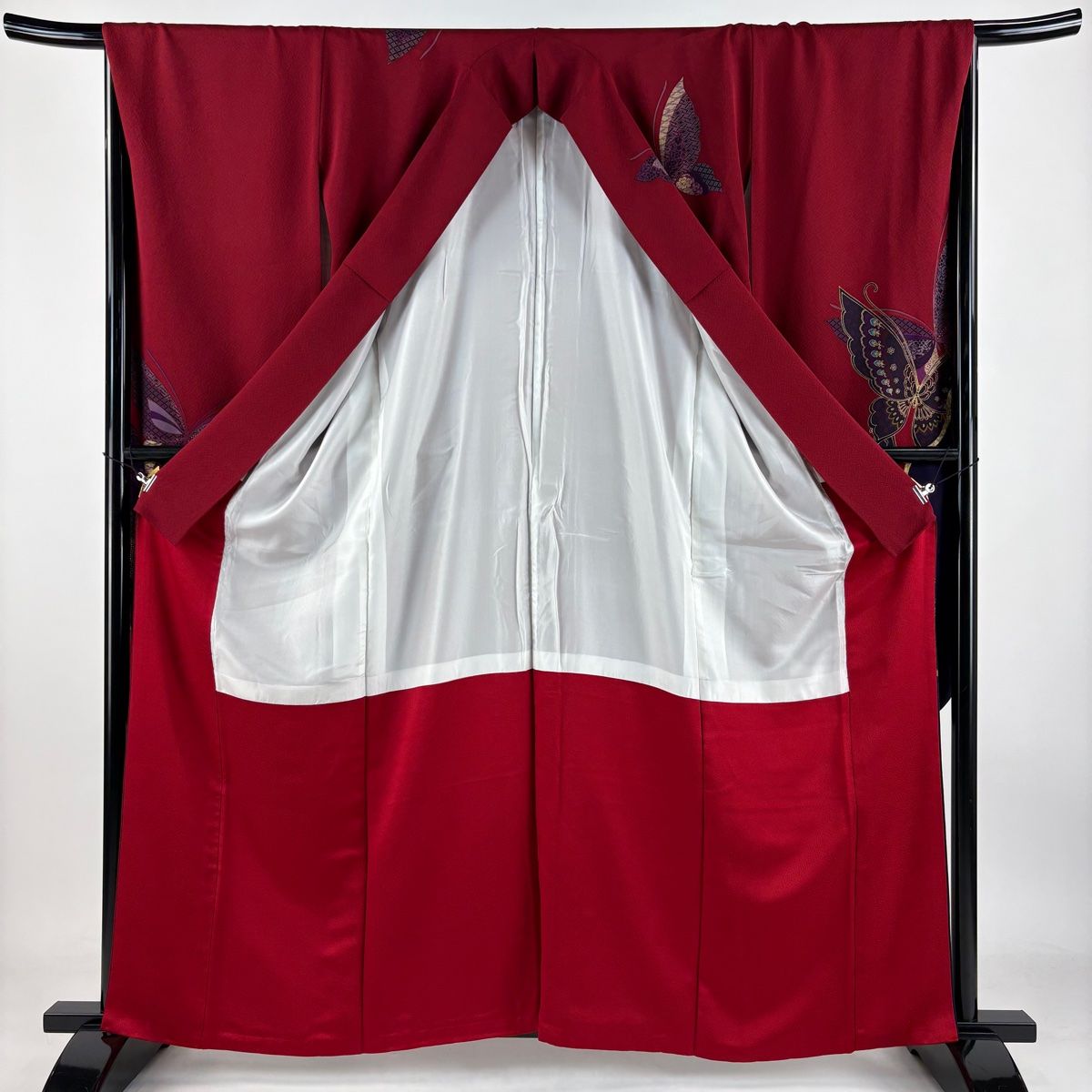振袖 身丈162cm 裄丈67.5cm L 袷 蝶 草花 箔 金彩 えんじ色 正絹 秀品の検索結果