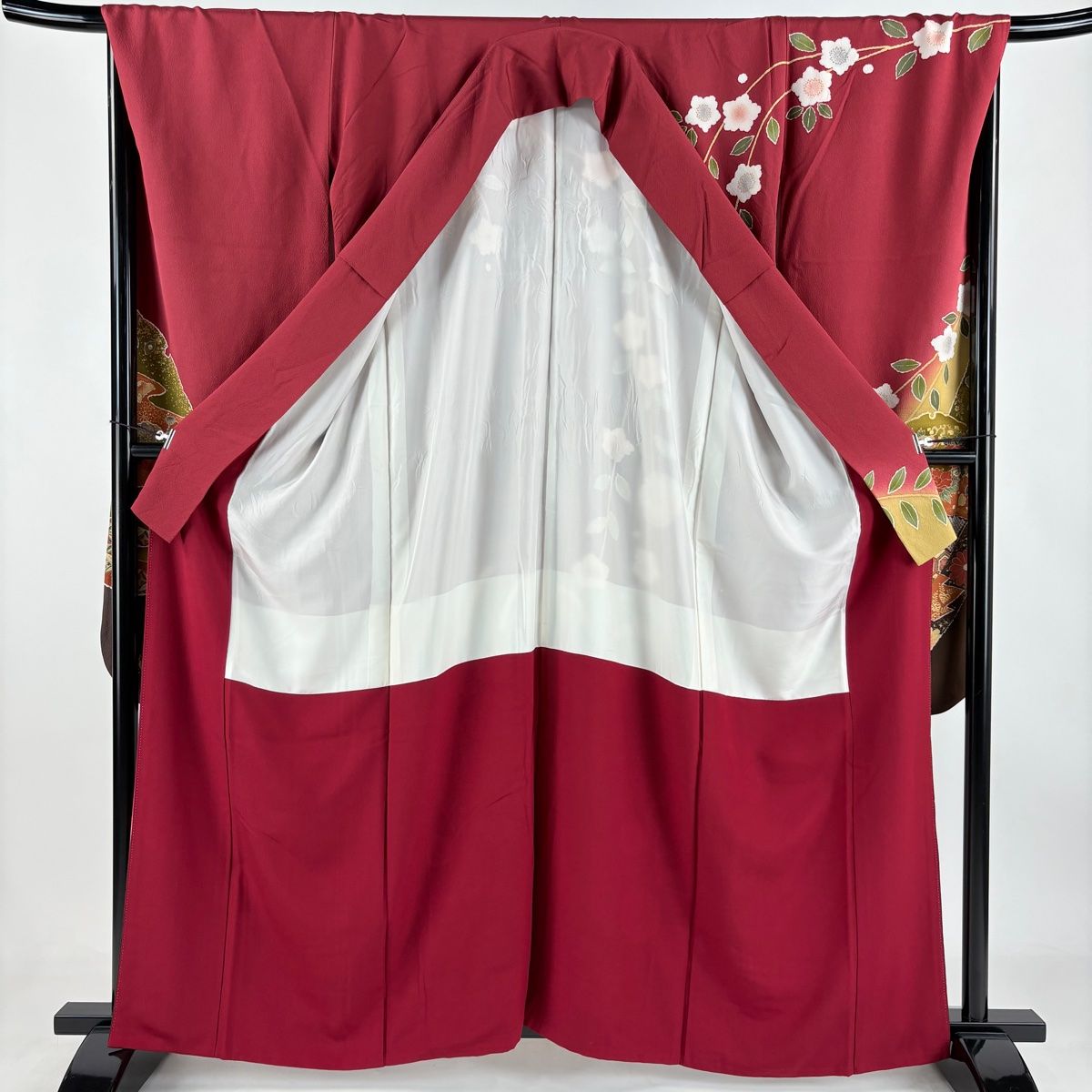 振袖 身丈161cm 裄丈68cm L 袷 鼓 雪輪 刺繍 金糸 茜色 正絹の検索結果