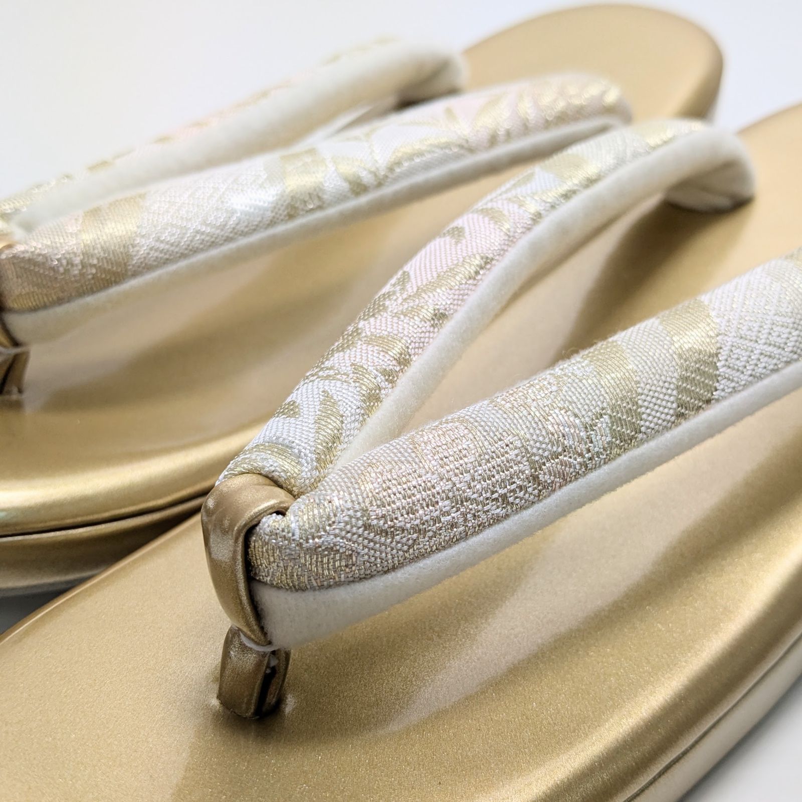 草履バッグセット 振袖 フォーマル 帯地 ゴールド 桜 フリー LLサイズ w22-7