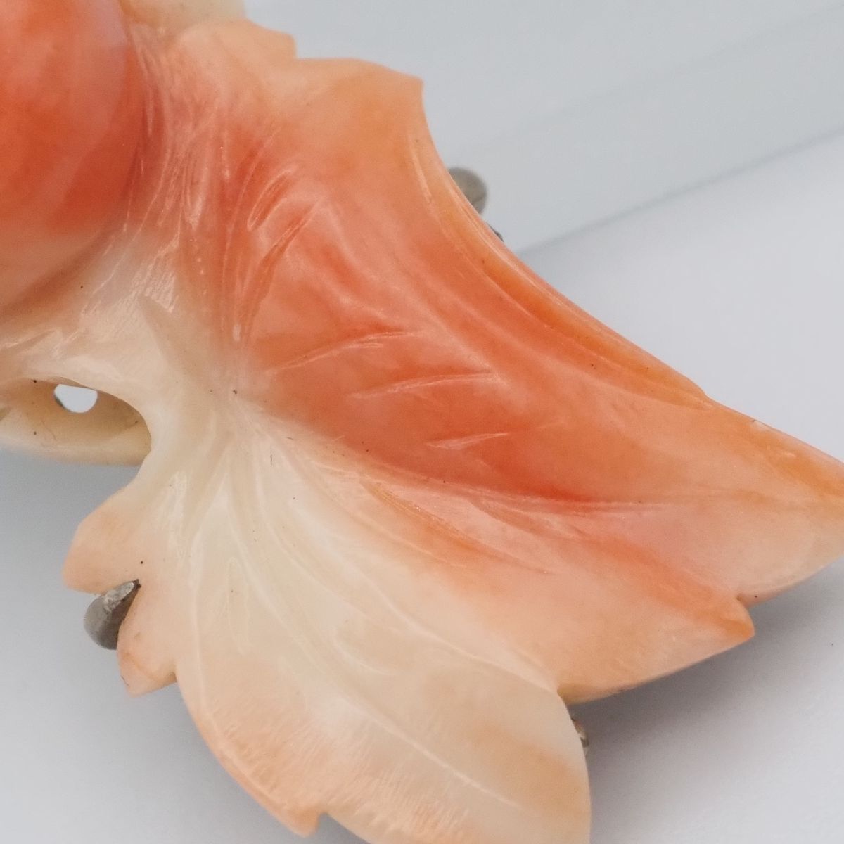 F075 珊瑚 サンゴ 帯留め 瓢箪 葉彫刻 デザイン シルバー 和装小物 ヴィンテージ 3月誕生石 WWW_GLOBALQUALITYIMPORTS_COM