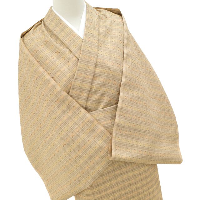 新古品 与那国花織 着物 着尺 正絹 反物 沖縄県 草木染 正絹 手織り 薄茶ベージュ地 花織 小格子 美しい花織 琉球花織 カジュアル 春 秋 冬 未仕立て みやがわ sbs16320 WWW_GLOBALQUALITYIMPORTS_COM