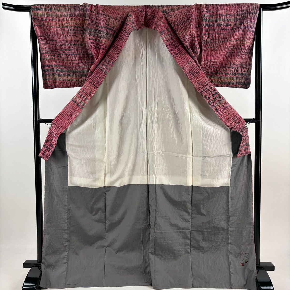 小紋 身丈173cm 裄丈67.5cm L 袷 紬地 幾何学 絞り ぼかし 赤紫 正絹の検索結果