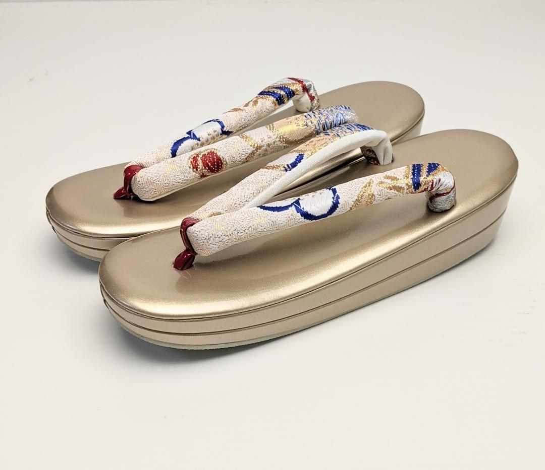 草履バッグセット 振袖 フォーマル 帯地 金 桜 フリーサイズ w48-5