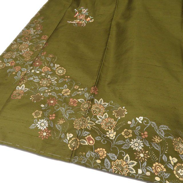 特選 紬地 着物 正絹 袷 セミフォーマル 刺繍 花の図 鶯茶色 多色 身丈165.5cm 裄65cm L トール きもの北條 A1274-6の検索結果