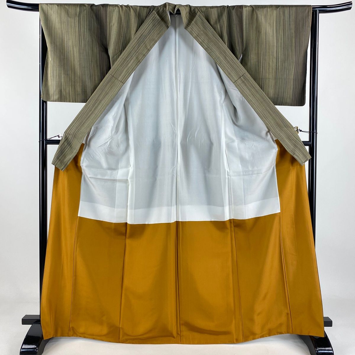 大島紬 身丈168.5cm 裄丈66.5cm M 袷 彩襲 証紙 縦縞 茶緑色 正絹の検索結果