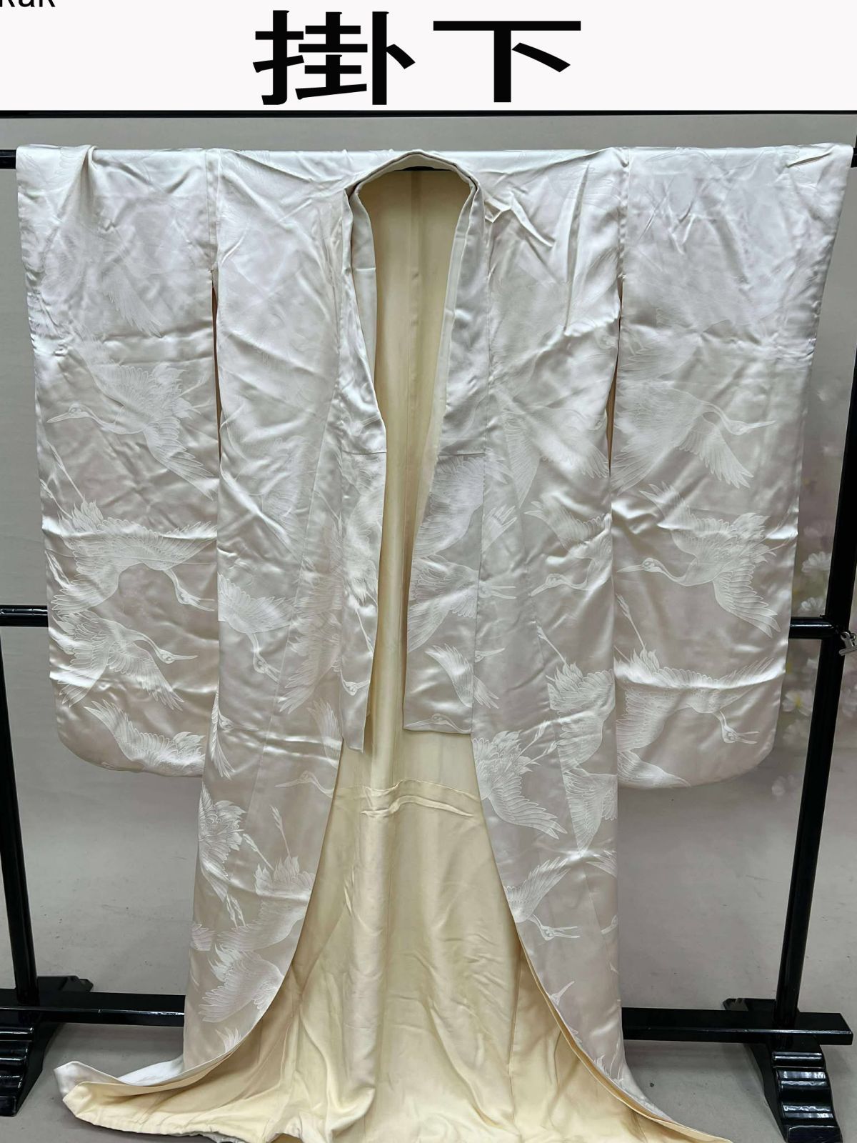 貸衣装処分品 掛下 生成色 着物 正絹 迎い鶴 みちよ会 きなりいろ