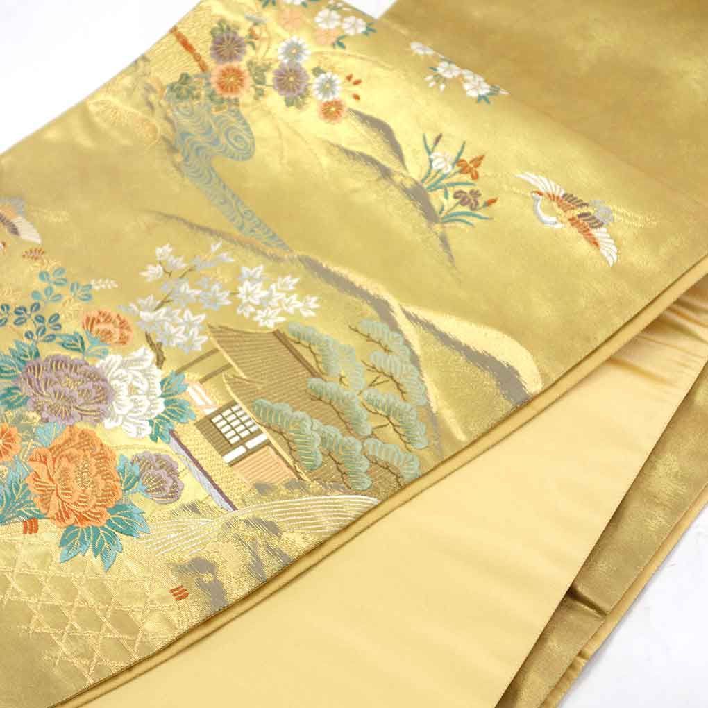 袋帯 幅31cm 長さ430cm レディース 風景画 秋冬春用 正絹 シルク ゴールド リメイク リユース リサイクル 呉服のきくや WWW_GLOBALQUALITYIMPORTS_COM