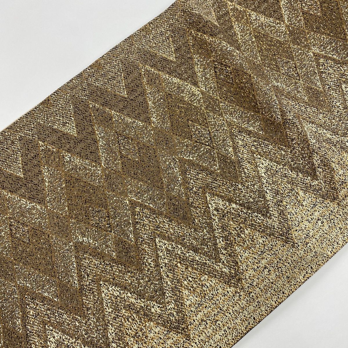 袋帯 幾何学模様 縞 金彩 ベージュ 全通 正絹