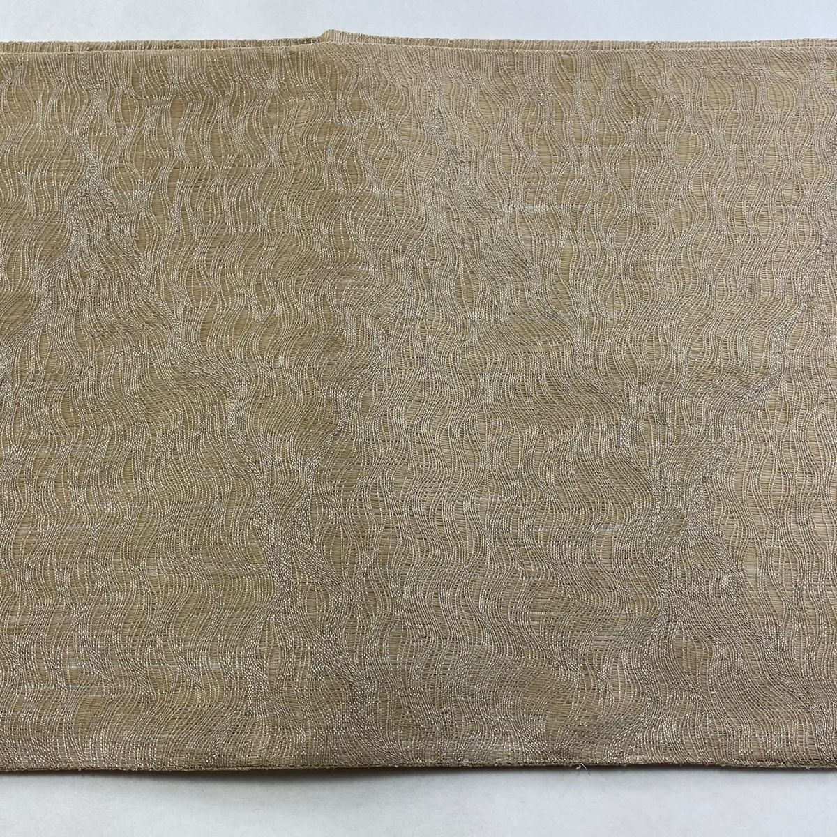 袋帯 秀品 紬地 樹木 幾何学模様 ベージュ 六通 正絹
