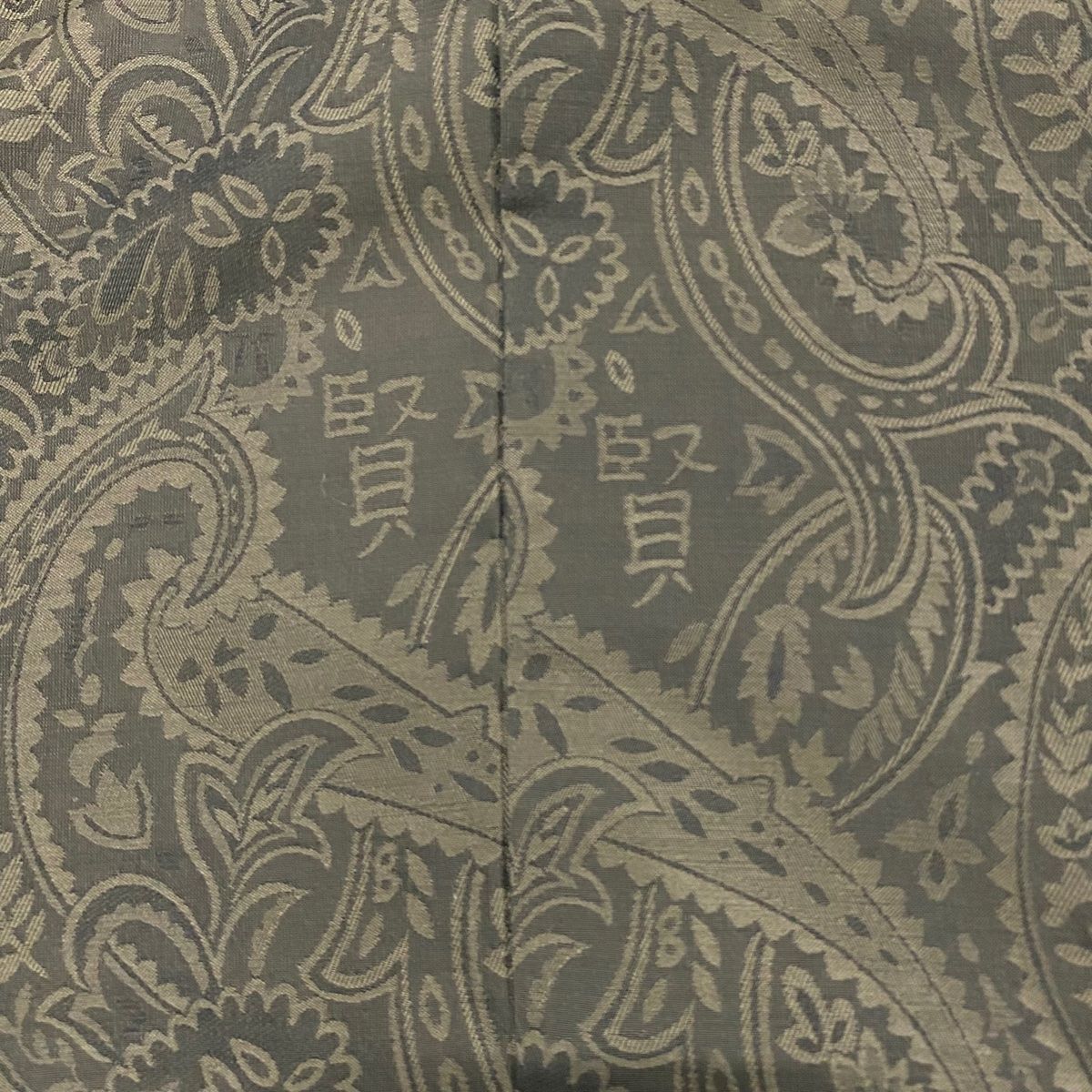 道行 身丈92cm 裄丈66cm M 和装コート 角衿 幾何学模様 地紋 絞り 灰緑 正絹 秀品