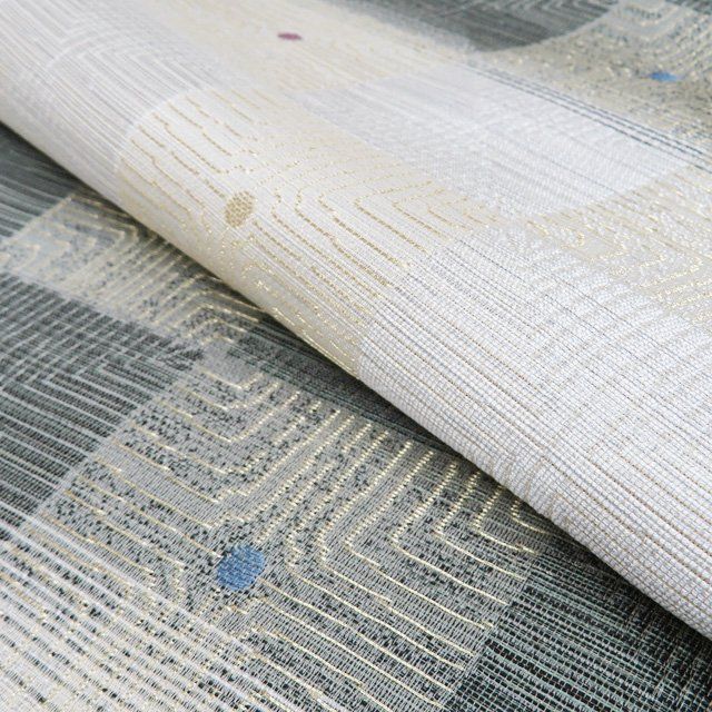 袋帯 正絹 セミフォーマル 仕立て上がり 六通 市松取り 金糸 オフホワイト 黒色 灰色 きもの北條 A1278-15 WWW_GLOBALQUALITYIMPORTS_COM