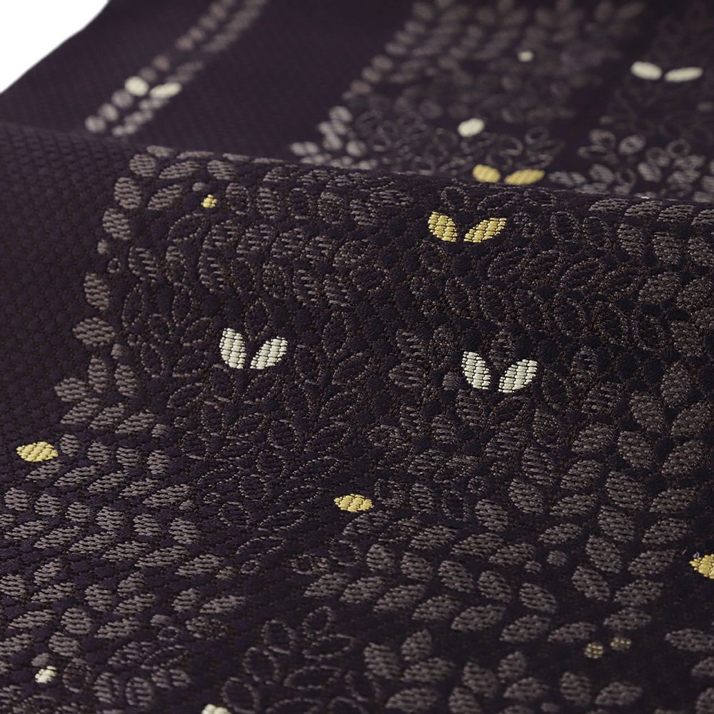 深く渋い紫の地に広がる葉模様。