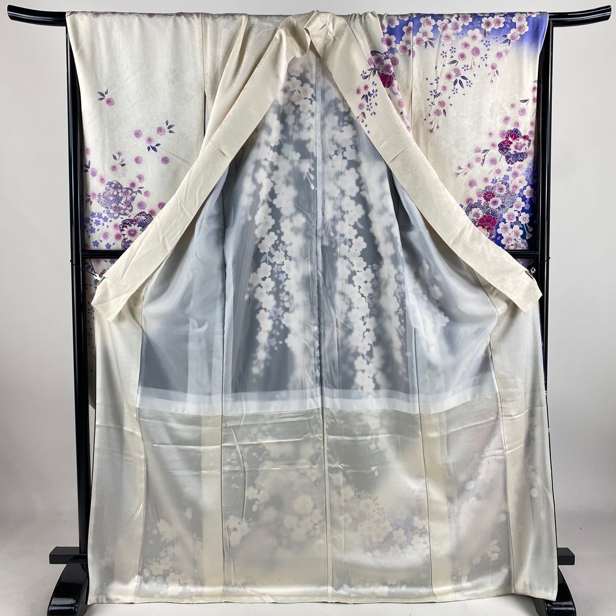 振袖 身丈167cm 裄丈66.5cm M 袷 鈴乃屋 草花 流水 銀通し ぼかし 紫 正絹