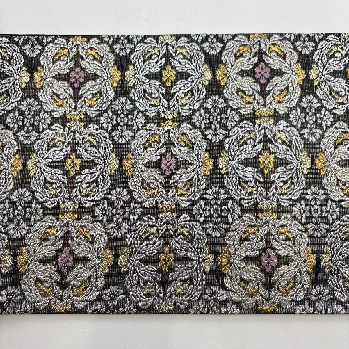 袋帯 龍村美術織物 落款 花葉 草花 金銀糸 箔 黒 六通 正絹 WWW_GLOBALQUALITYIMPORTS_COM