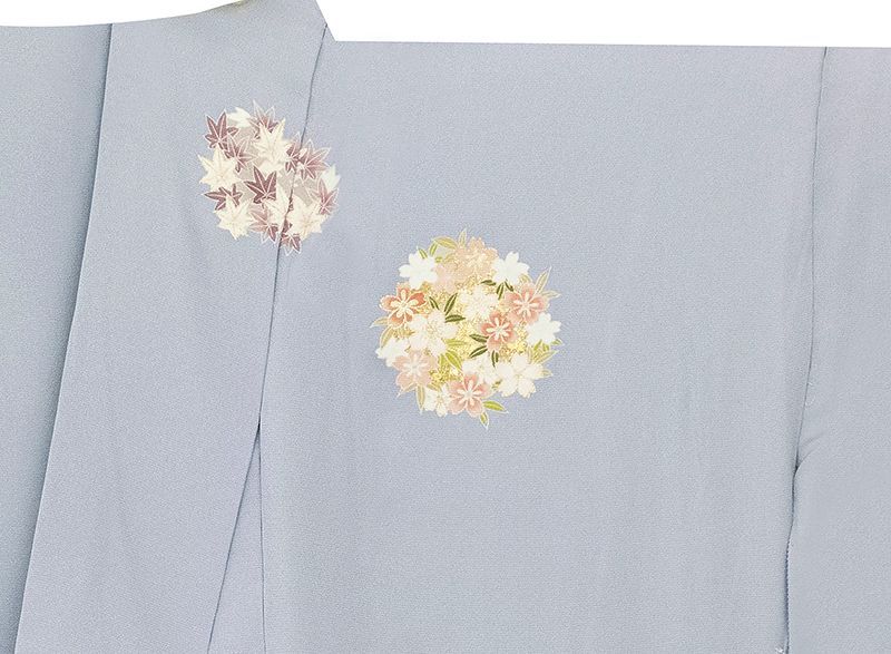訪問着 身丈157cm 裄丈64cm M 袷 短冊 菊 金彩 刺繍 灰緑 正絹 秀品