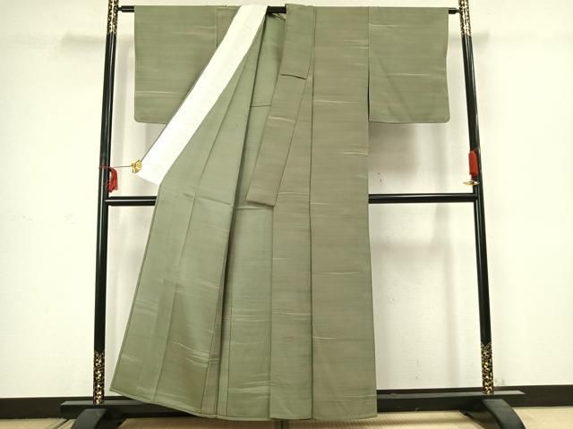 平和屋着物▽上質な小紋 単衣 横段文 正絹 AABC3963fy