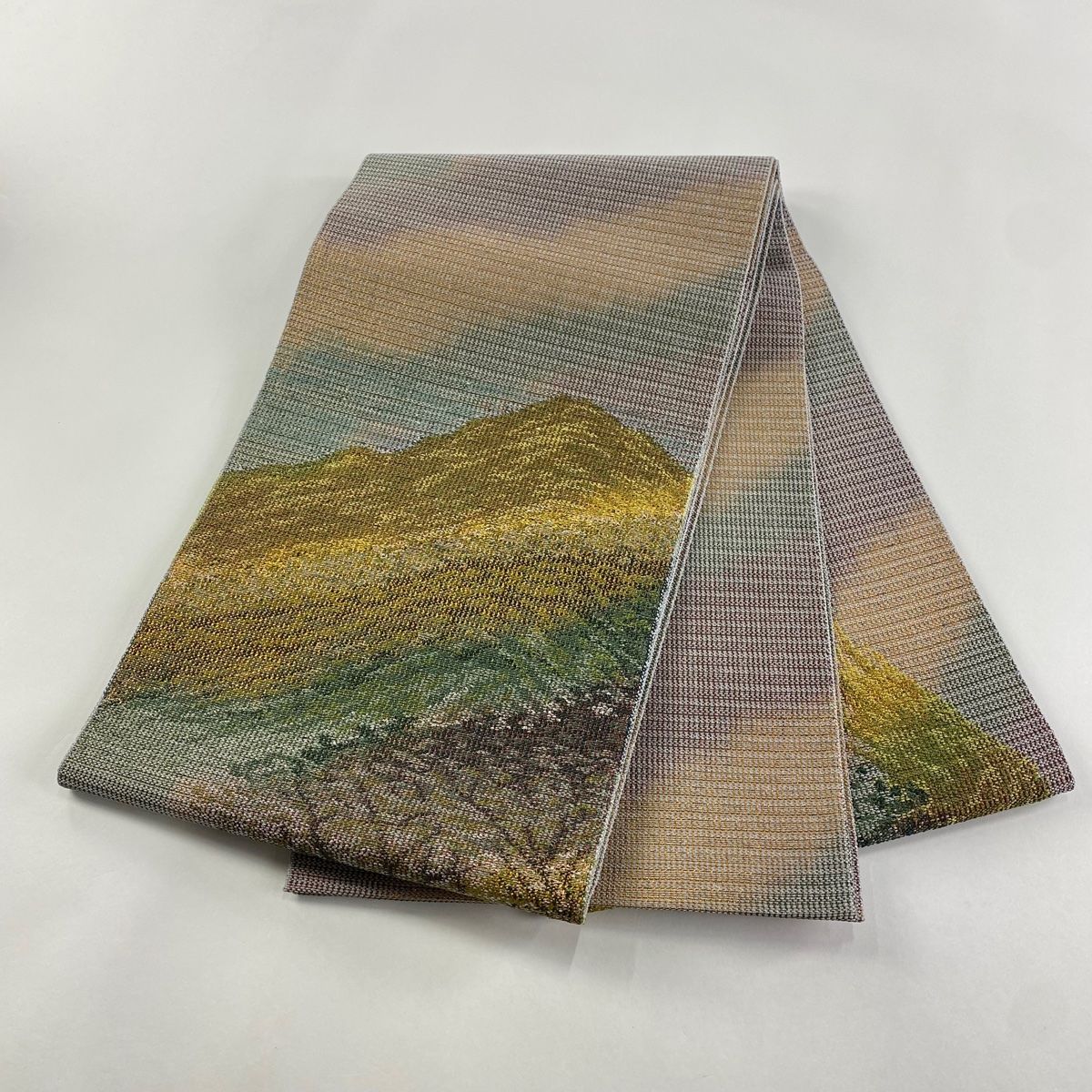 袋帯 山並み 風景 箔 灰紫 お太鼓柄 正絹 WWW_GLOBALQUALITYIMPORTS_COM