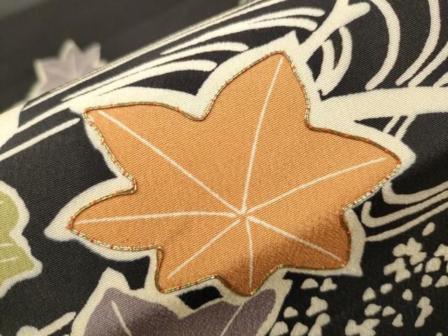 平和屋着物 夏物 アンティーク 大正ロマン 丸帯 駒刺繍 流水草花舟文 正絹 DAAW4516cm