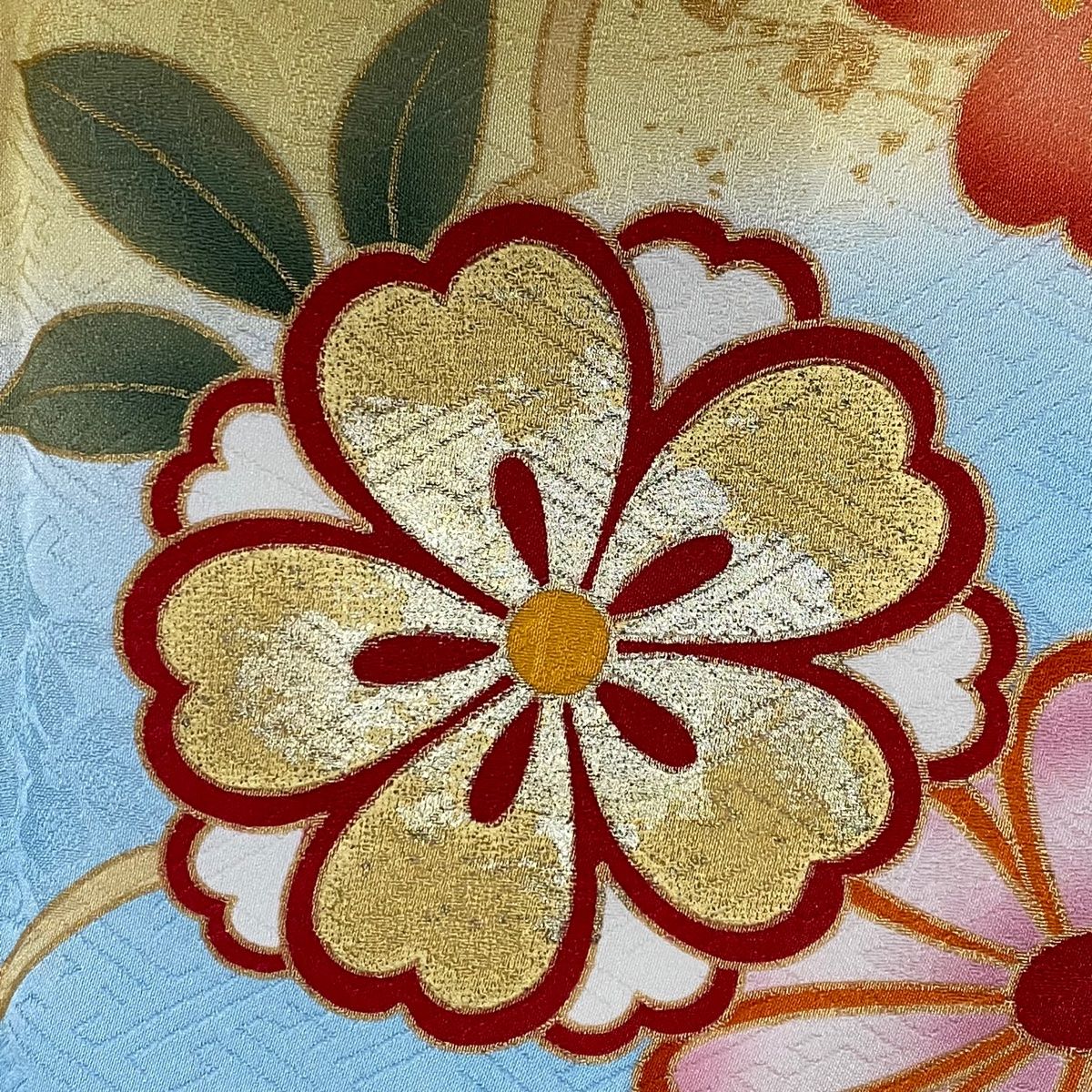 振袖 身丈170cm 裄丈66cm M 袷 草花 手鞠 金糸 金彩 水色 正絹の検索結果