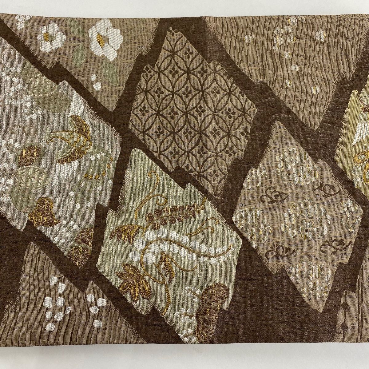 袋帯 関西仕立て となみ帯 草花 花鳥 箔 茶色 六通 正絹の検索結果