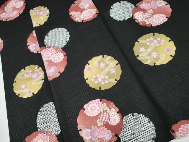 平和屋着物∴夏物 浴衣 縦綿絽 雪輪花文 黒地 綿 CAAW1117ng WWW_GLOBALQUALITYIMPORTS_COM