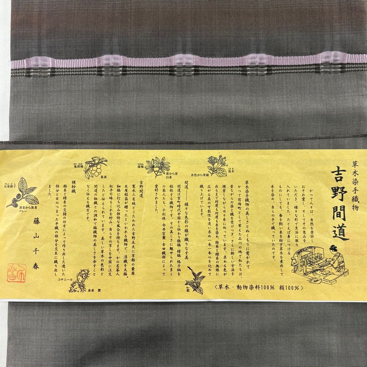 名古屋帯 藤山千春 落款 証紙 草木染 吉野間道 茶紫 正絹 WWW_GLOBALQUALITYIMPORTS_COM