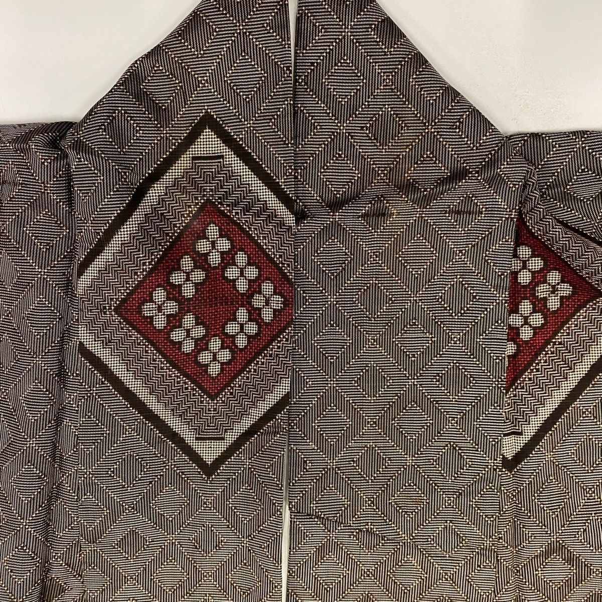紬 身丈155.5cm 裄丈64cm M 袷 菱 花 焦茶色 正絹の検索結果