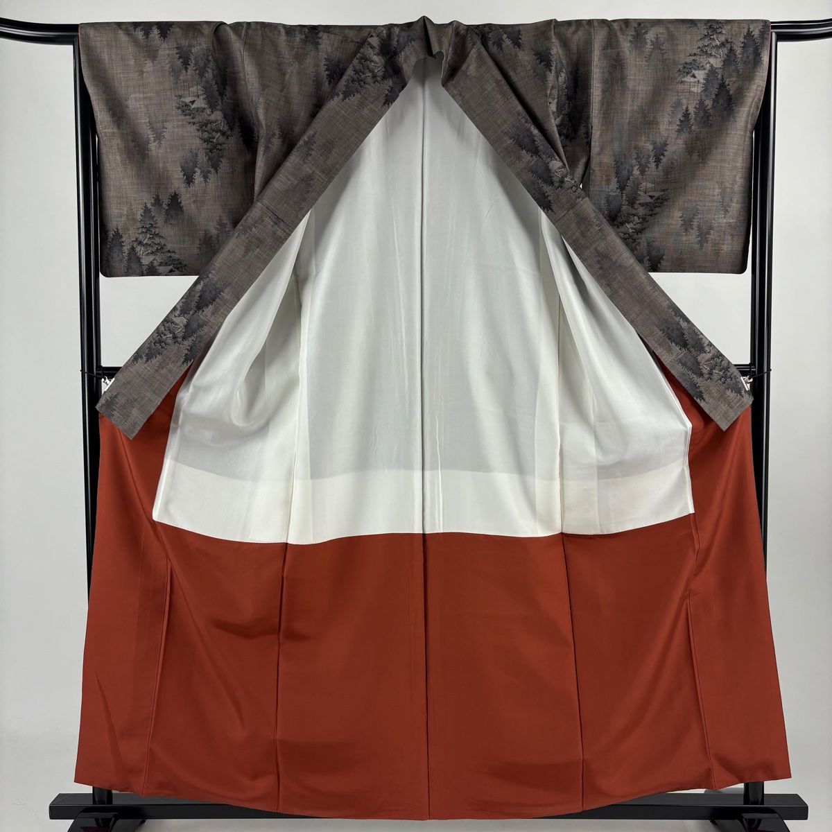 紬 身丈160.5cm 裄丈66cm M 袷 やまと 樹木 家屋 焦茶色 正絹 秀品の検索結果