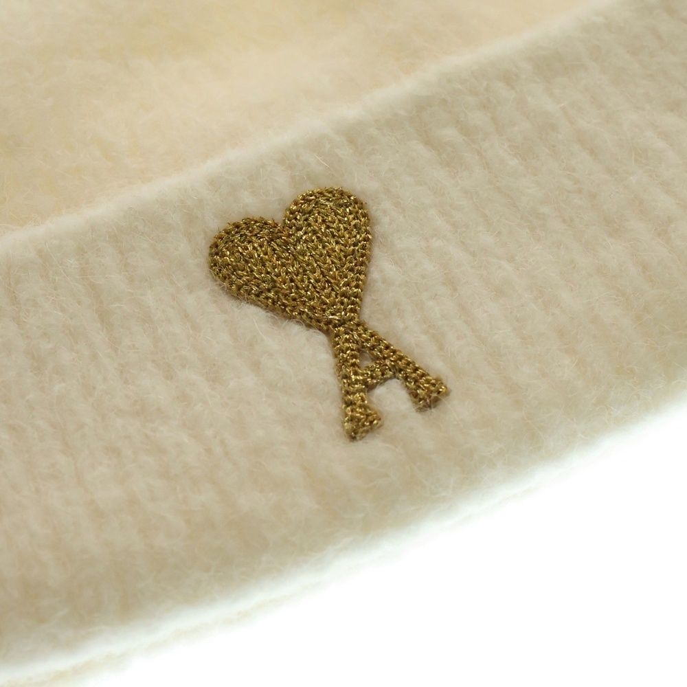 ami paris アミパリス Ami De Coeur アミ デ クール ハート ロゴ刺繍 アルパカ ウール ニットキャップ 帽子 ホワイト ゴールド SPUHA297.KN0032 WWW_GLOBALQUALITYIMPORTS_COM