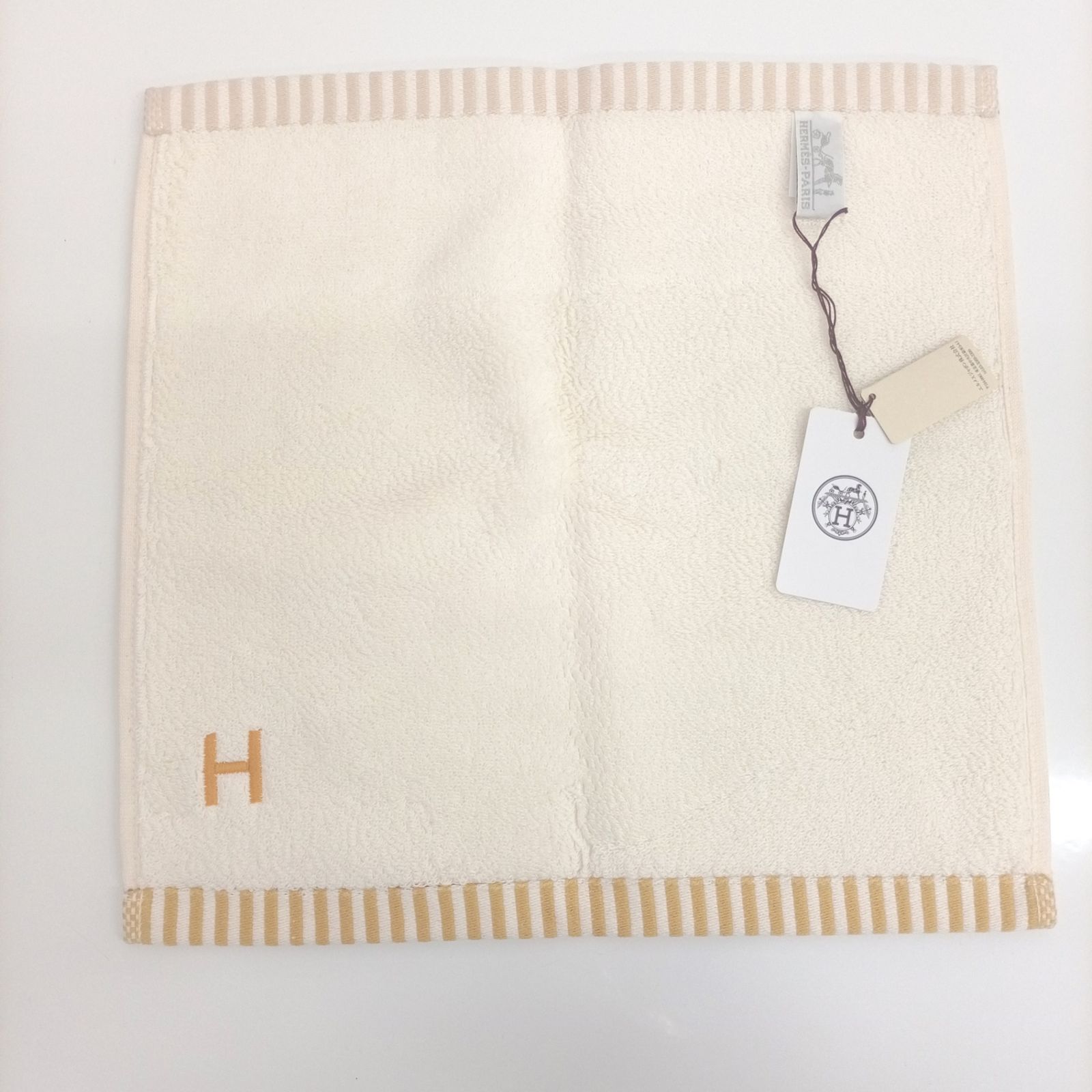 エルメス HERMES ハンカチ ミニタオル ハンドタオル カレ タオル オレンジ ベージュ オフホワイト系 H柄 JA-24775 WWW_GLOBALQUALITYIMPORTS_COM