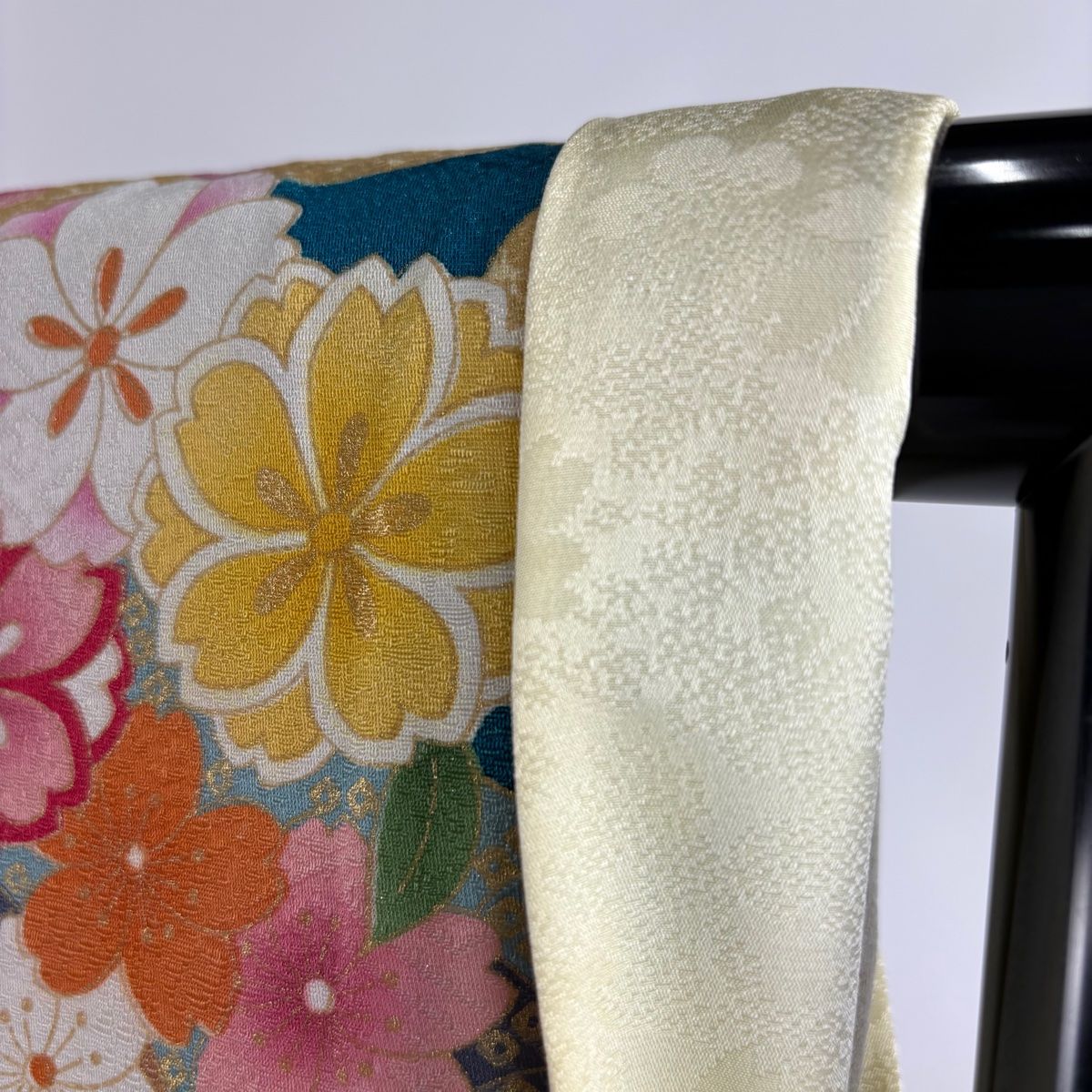 振袖 身丈167cm 裄丈66cm M 袷 草花 短冊 銀通し 金彩 青緑 正絹の検索結果