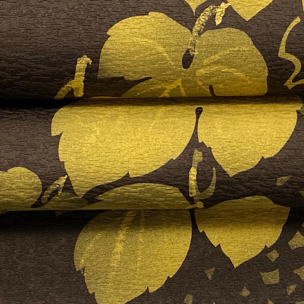 袋帯 菅有鬼一 落款 葉柄 金彩 茶色 六通 正絹 WWW_GLOBALQUALITYIMPORTS_COM